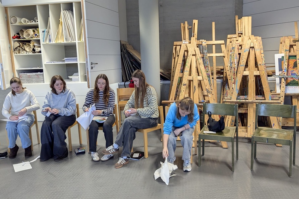 Im einführenden Workshop lag der Fokus auf dem Thema „Bewegung“ in der Kunst. Die Schülerinnen und Schüler arbeiteten mit Stiften und Papieren aktiv und reflektierten, wie sich Bewegung sowohl im Entstehungsprozess als auch in der Wahrnehmung der Plastiken ausdrückt. Durch praktische Aufgaben und angeleitete Beobachtungen wurden eigene Ideen entwickelt und diskutiert. Dabei wurde deutlich, wie eng Körperwahrnehmung, Raum und künstlerische Gestaltung miteinander verbunden sind.